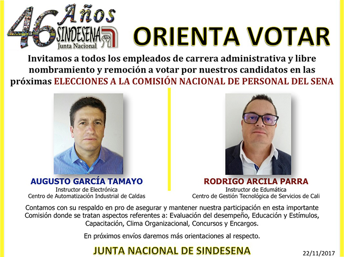 SINDESENA CON CANDIDATOS A LA COMISIÓN NACIONAL DE PERSONAL