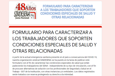 Para minimizar los riesgos negativos en la salud, a raíz de la actual emergencia sanitaria por el coronavirus, el SENA se acogió a las medidas gubernamentales sobre trabajo en casa para el personal de instructores y administrativos, expidiendo entre otras, las Circulares 050 y 055 de marzo de 2020, en donde se exponen lineamientos mínimos en material de prevención y contención del pico epidemiológico de COVID-19…