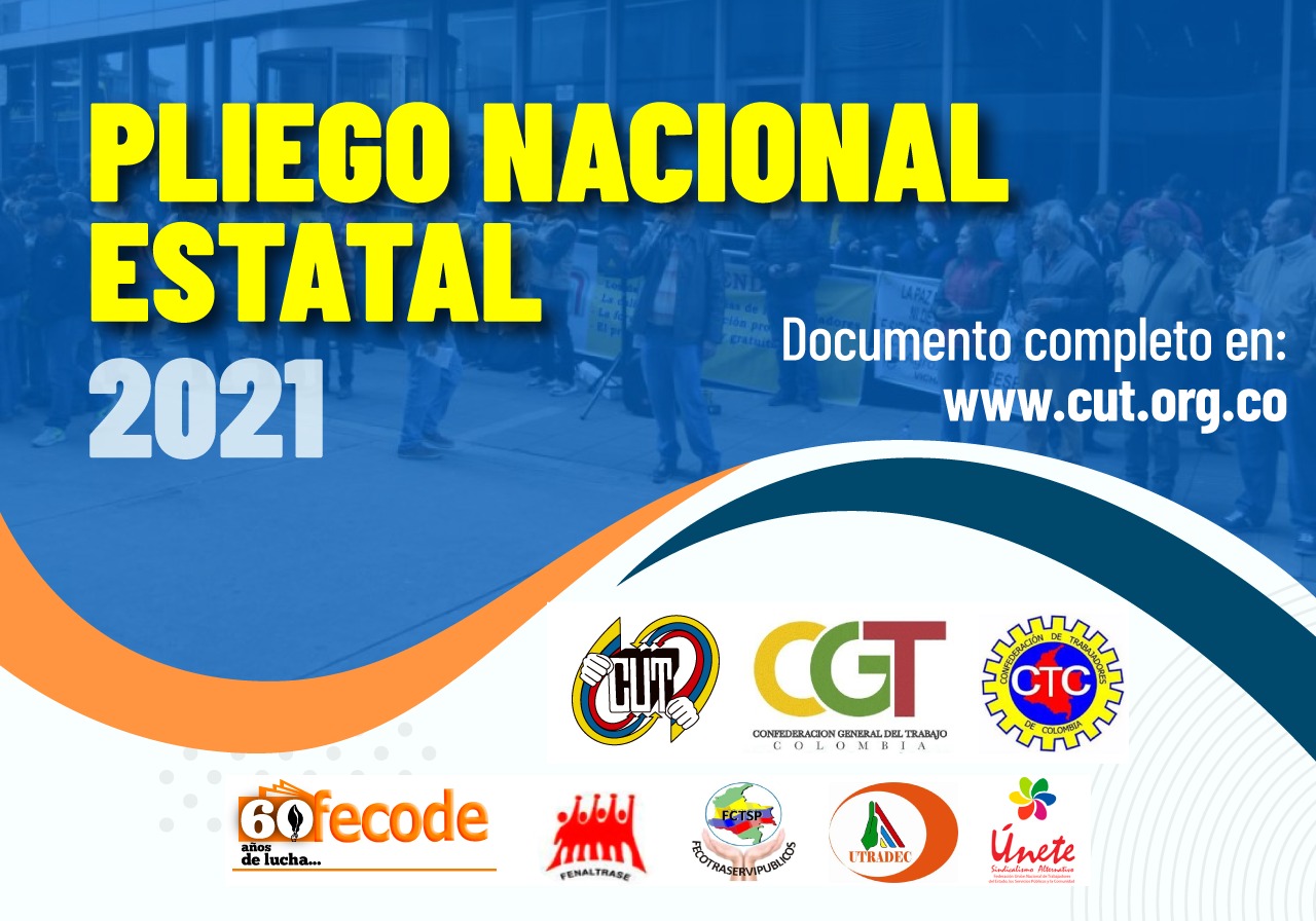Las Confederaciones: CUT, CGT y CTC y las Federaciones Sindicales de Empleados Públicos: FECODE, FENALTRASE, UTRADEC y FECOTRASERVIPUBLICOS, presentan al Gobierno Nacional para su Negociación Colectiva de ámbito general o de contenido común, con fundamento en la declaración universal de los derechos humanos, la constitución política de Colombia en sus artículos 1, 2, 23, 38, 39, 53, 55, 56 y 58, los convenios internacionales de la OIT 151 de 1978 y 154 de 1981, relativos a las relaciones de trabajo en la administración pública y el fomento de la negociación colectiva…