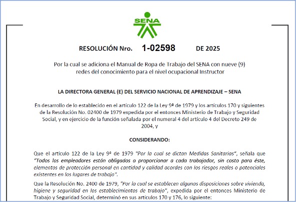 El 28 de agosto de 2025 la Secretaría General, vía “Comunicaciones Institucionales”, difundió por correo el mensaje “Manual de Ropa de Trabajo – nivel Instructor”, adjuntando únicamente el archivo de la Resolución 1‑02598 de 2025 e invitando a “ver documento adjunto”. No se anexaron las fichas técnicas del Anexo “Manual de Ropa de Trabajo” ni se precisó dónde consultarlas.