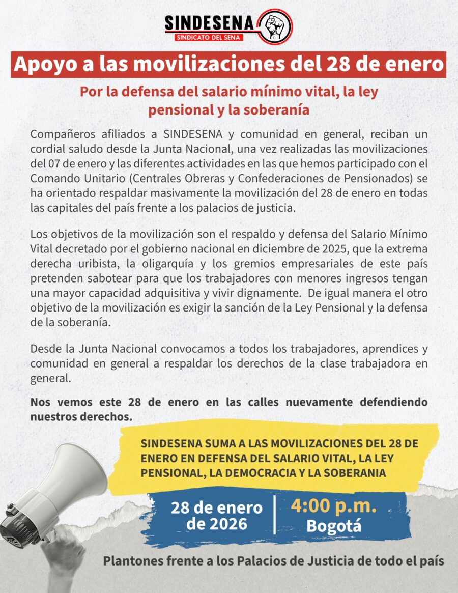 SINDESENA llama a la comunidad del SENA a defender la soberanía y la democracia