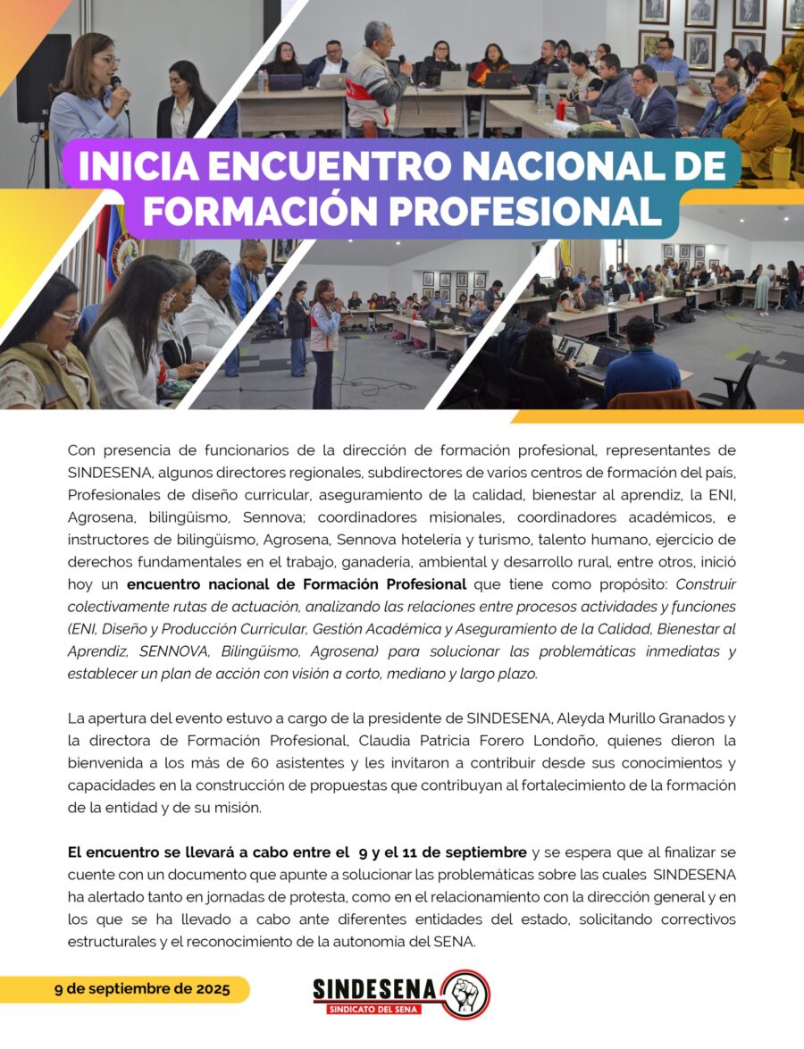 La administración del SENA no brinda condiciones para la participación de los representantes de los trabajadores en la Comisión Nacional de Personal (CNP) y no socializa oportunamente con los delegados de la CNP ni con SINDESENA, en los escenarios de relacionamiento sindical, los ajustes introducidos en el Acuerdo 17 del 29…