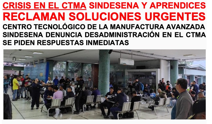 SINDESENA Subdirectiva Antioquia, en ejercicio de los derechos consagrados en la Constitución Política y la Ley 119 de 1994, realizó, junto con instructores, administrativos y aprendices, un Plantón de Protesta con cierre informativo este 24 de septiembre en el Centro Tecnológico de la Manufactura Avanzada (CTMA) con el fin de solicitar respuestas precisas a la problemática que aqueja a dicho centro de formación debido a la desadministración del subdirector Gustavo Adolfo Vásquez. Además, pidiendo soluciones a inconvenientes presentes en el Complejo Norte.