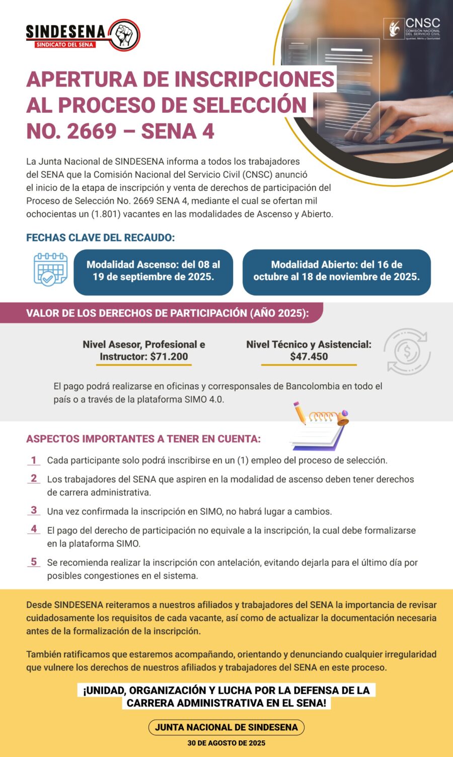 Apertura de inscripciones al proceso de selección N° 2669 - SENA 4
