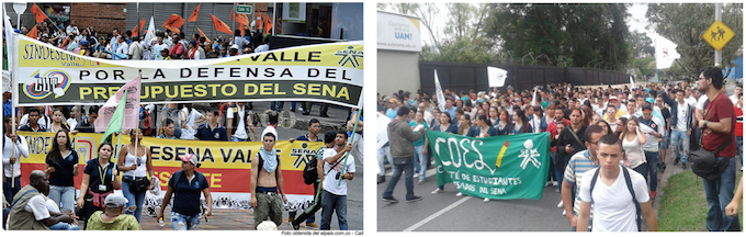Con multitudinarias marchas desde diferentes regionales del país, estudiantes y trabajadores del SENA, expresaron su rechazo en las calles frente a las políticas del actual gobierno de Juan Manuel Santos.