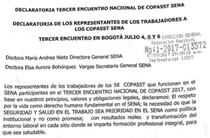 Subdirectiva Cundinamarca, Junta Nacional Representante de los Trabajadores COPASST Nacional-Junio de 2017