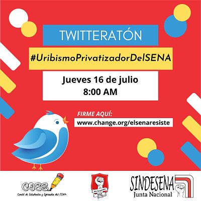 Luego de la contundente tendencia en Twitter del jueves pasado que duró más de 7 horas de tendencia y más de 5 horas en el #1, estamos seguros que el Gobierno Nacional y la Dirección del SENA, sienten la presión de SINDESENA y de miles de trabajadores del SENA y ciudadanos defensores de la educación pública .