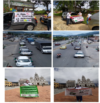 Más de cien vehículos, gran cantidad de motos y bicicletas aceptaron la invitación en Popayán de SINDESENA y el Colectivo de Jóvenes Trabajadores, para realizar una caravana de protesta contra las irracionales formas que el señor Carlos Mario Estrada viene aplicando, en favor de las multinacionales de las comunicaciones, a quienes entrega los recursos de Formación Profesional, para contratar cursos basura de 5 y 7 horas…