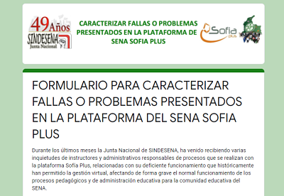 SINDESENA RECLAMA QUE FUNCIONE LA PLATAFORMA SOFÍA PLUS