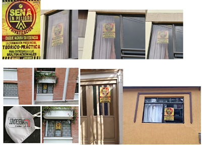 Con carteles en ventanas y fachadas, contra la privatización de la entidad y en defensa de la formación presencial teórico-práctica, trabajadores del SENA Regional Caldas afiliados a SINDESENA Caldas alzan su voz y se manifiestan desde casa: