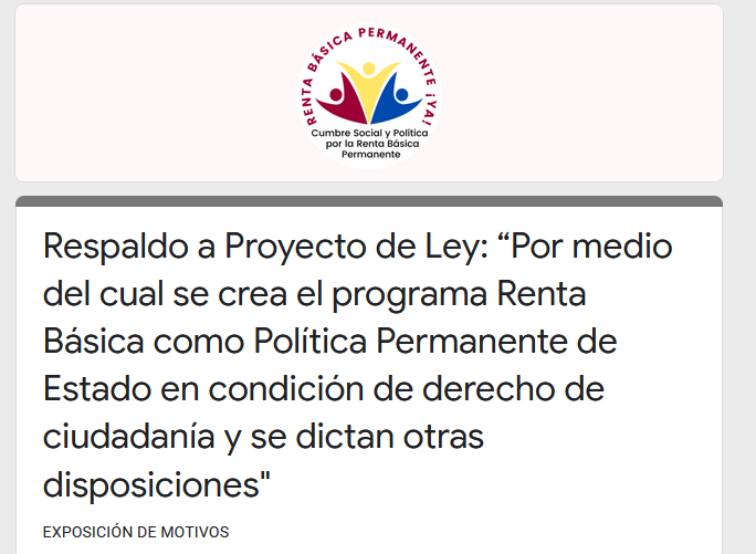 #URGENTE Te invitamos a sumar tu firma ✍???? para respaldar el Proyecto de Ley que resultó del ejercicio de la Cumbre por la Renta Básica Permanente: “Por medio del cual se crea el programa Renta Básica como Política Permanente de Estado en condición de derecho de ciudadanía y se dictan otras disposiciones» ????