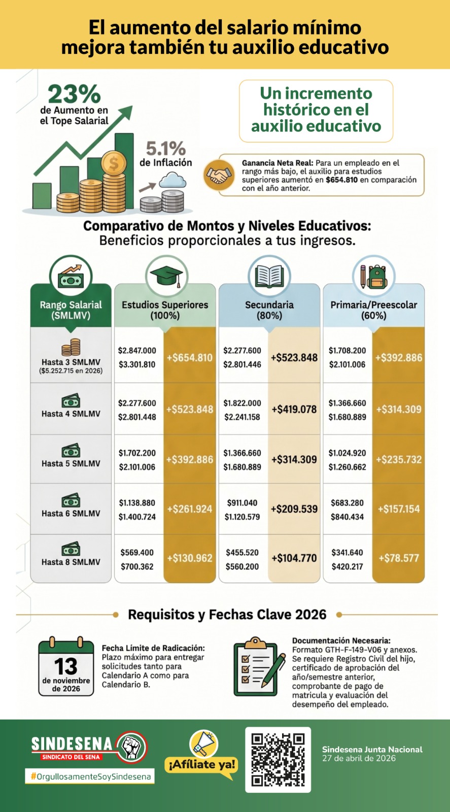 ¡Si se pudo! logramos un incremento salarial adicional del 5% para los trabajadores del SENA