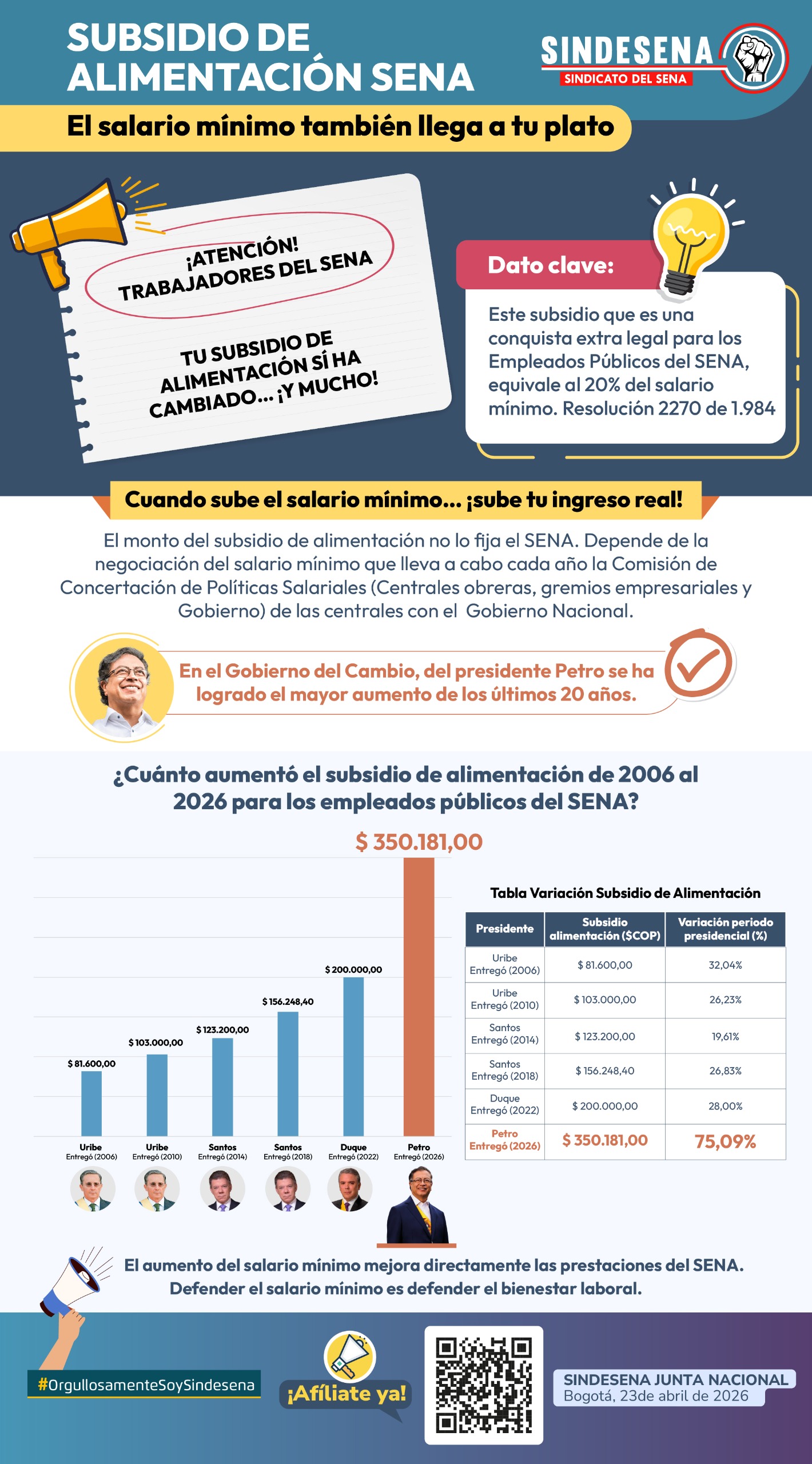 ¡Si se pudo! logramos un incremento salarial adicional del 5% para los trabajadores del SENA