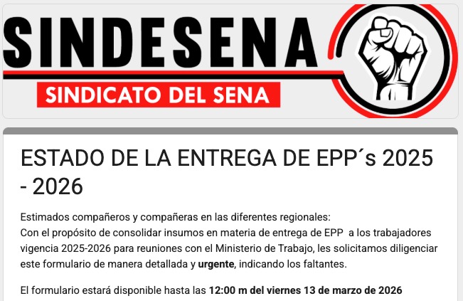 Con el propósito de consolidar insumos en materia de entrega de EPP a los trabajadores vigencia 2025-2026 para reuniones con el Ministerio de Trabajo, les solicitamos diligenciar este formulario de manera detallada y urgente, indicando los faltantes.