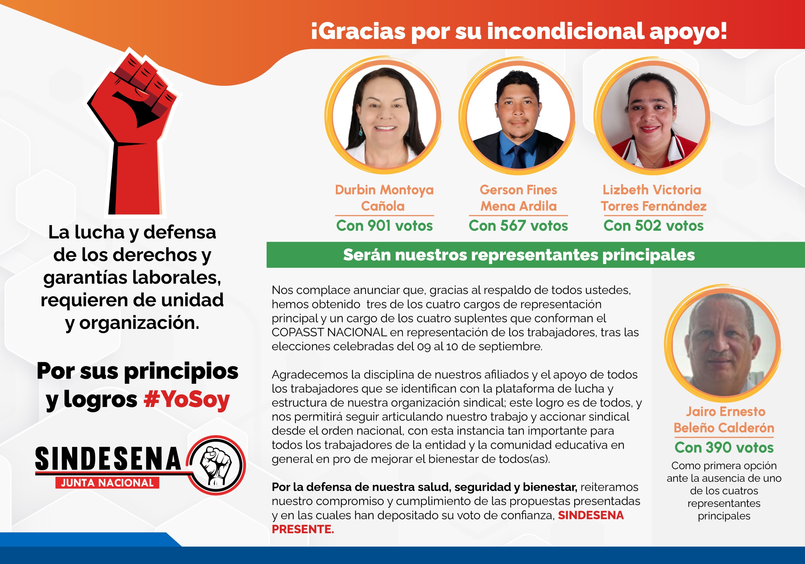 Gracias por apoyo en elecciones de COPASST