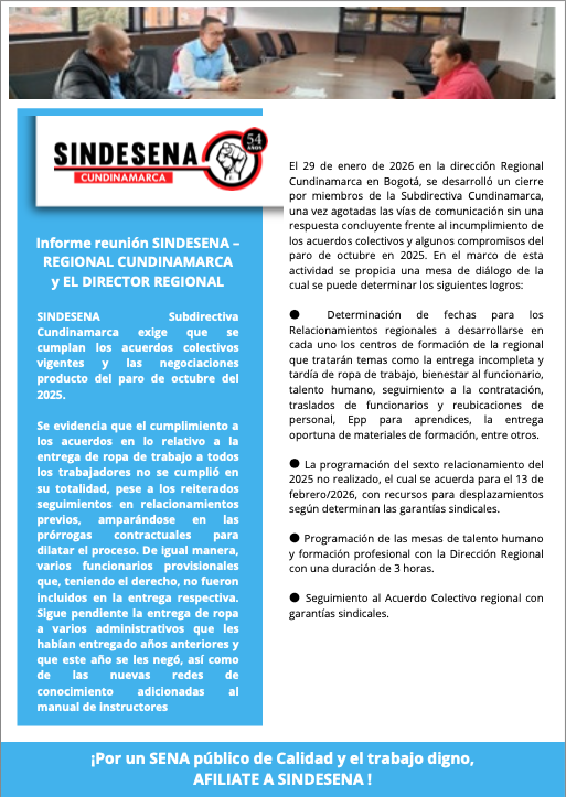 Informe reunión Sindesena – Regional Cundinamarca y el director regional