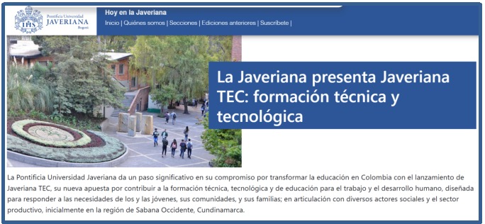 Recientemente llamó la atención de los medios de comunicación la creación de instituciones de formación técnica y tecnológica por Universidades de reconocida trayectoria en la vida nacional como la UNIVERSIDAD JAVERIANA con su JAVERIANA TEC.