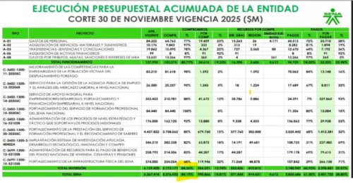 El presupuesto del SENA en el Gobierno de Gustavo Petro, entre el año 2022 y 2026, creció cerca del 57.7%, pasando de $4.05 Billones a $6.39 Billones; mientras en el Gobierno de Iván Duque entre 2018 y 2022, pasó de $3.39 Billones a $4.051 Billones que representó un crecimiento del 19.5%; en el segundo Gobierno de Juan Manuel Santos entre 2014 y 2018 pasó de $2.7 Billones a $3.39 Billones, para un crecimiento del 25.5%; en el primer Gobierno de Santos pasó de $1.93 Billones en 2010 a $2.7 Billones, para un crecimiento del 39.9%.