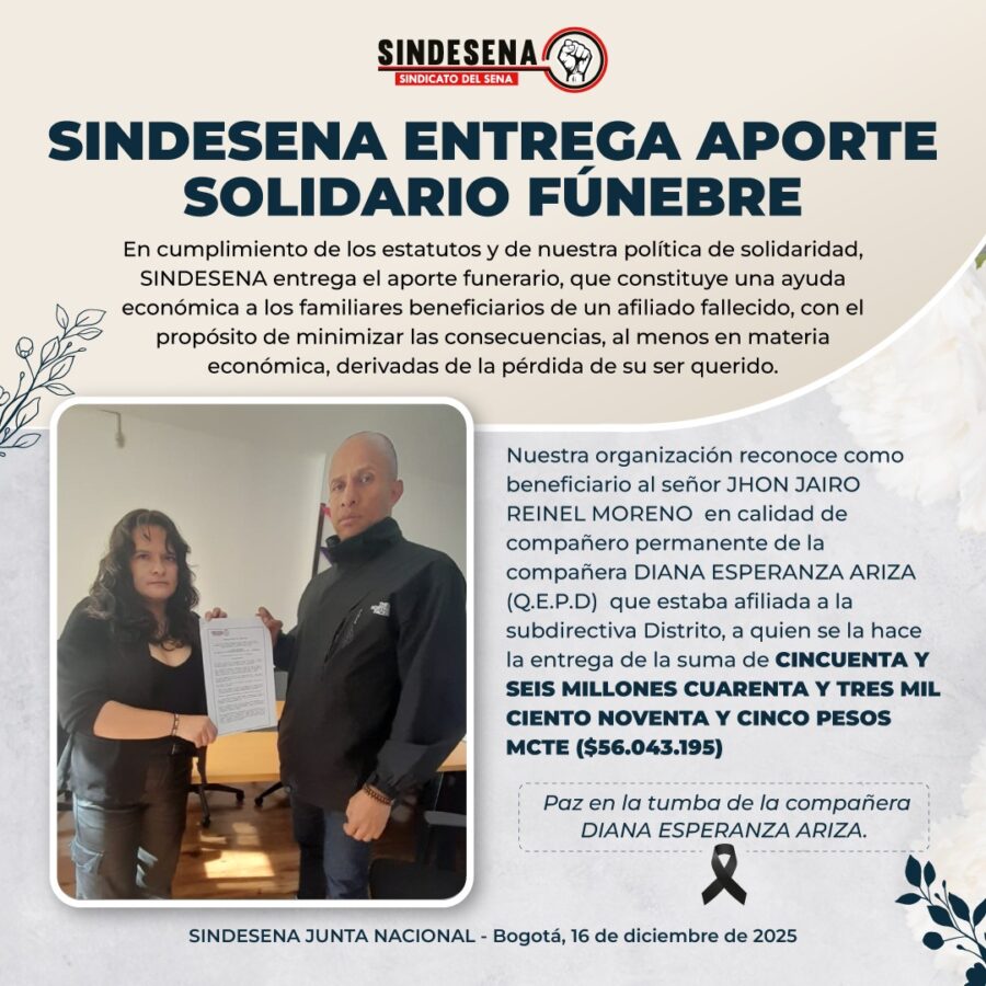 Skip to main contentSindesena entrega aporte solidario fúnebre